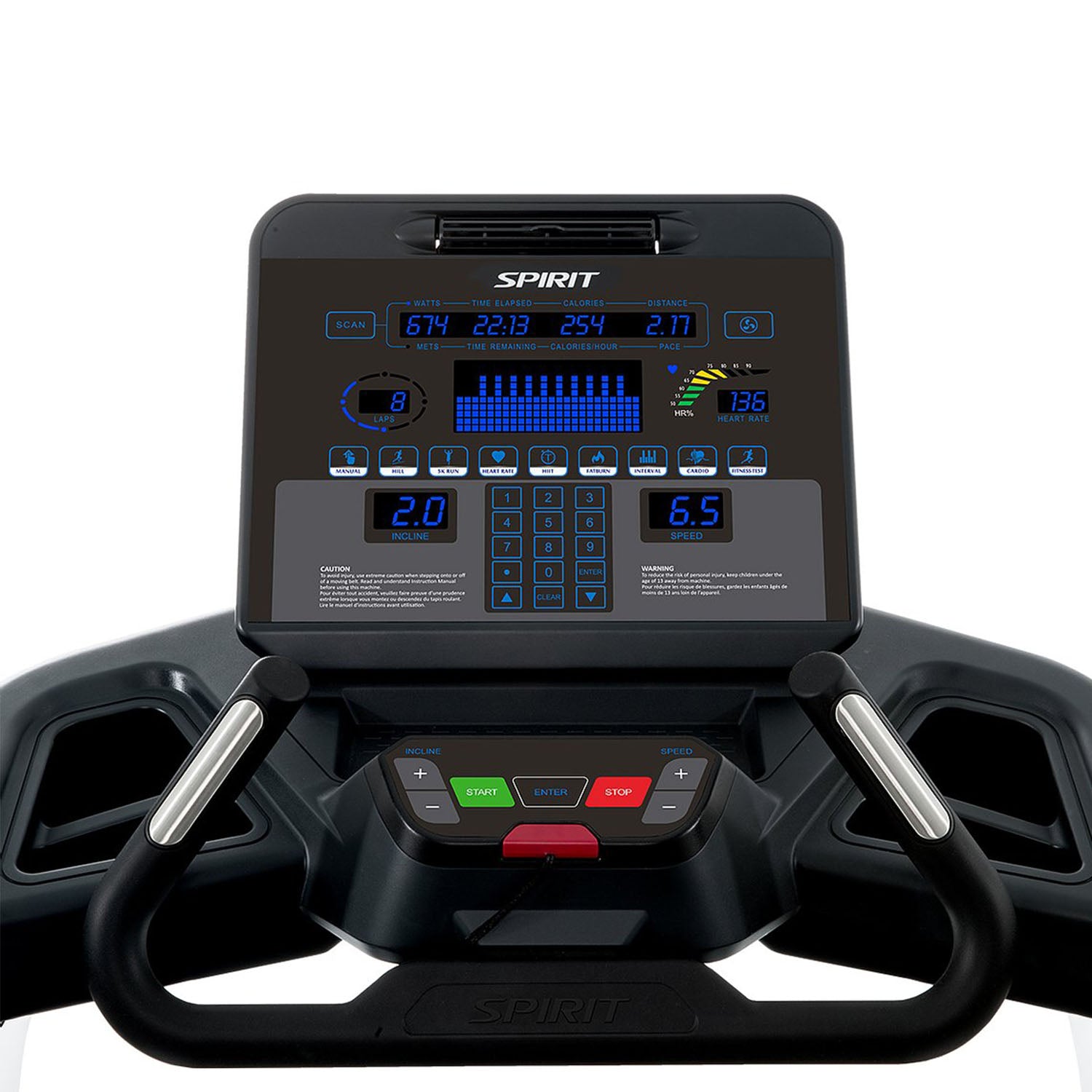 The CT900’s ultra-bright LED display, Bluetooth connectivity and TV Function (optional add-on) allow for users entertainment needs to be met whilst exercising. It also allows for immediate feedback on your fitness performance. The smooth grip hand-sensors allow you to accurately track your heartrate when completing one of wide range of programmes, including military fitness testing. In terms of design, the treadmill is built to withstand the test of time. It contains an industrial powered motor, allowing speeds up to an impressive 15 MPH. It has been constructed with specially selected commercial grade components. The specifications for the shocks, rollers, belts and decks were meticulously chosen to give users a smooth workout experience, ensuring maximum comfort. Pressure on the joints is minimised via shock absorbent polyurethane decking and a roomy workout surface. The sleek powder-coated steel in Graphite Grey and wax coated decking provides not only practicality but a sleek and professional addition to any gym.